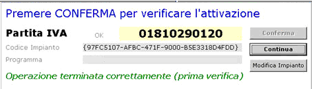 NOTA: la dicitura “prima verifica” compare solo la prima volta che si effettua la connessione; alle volte successive comparirà “Operazione terminata correttamente”: