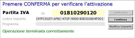 Ogni utilizzatore ha la propria Partita IVA, e su questa viene attivato un impianto.