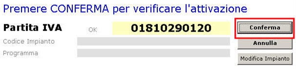 Inserire la propria Partita Iva nell’apposito campo, quindi premere CONFERMA.