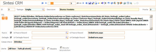 La Sintesi CRM viene visualizzata dagli utenti che sono abilitati ad usufruire di questa funzione.