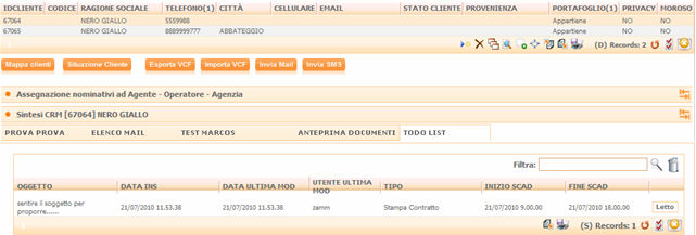 La Sintesi CRM è la finestra su tutte le informazioni collegate ad una anagrafica (cliente o prospect).