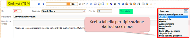 Descrizione: nome da dare alla sintesi e che sarà visualizzato nel CRM