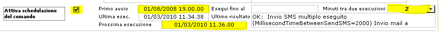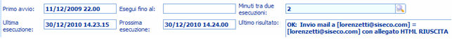 Una volta determinato il primo avvio, occorre determinare la frequenza di esecuzione del comando, impostando il campo “Minuti tra due esecuzioni”, come indicato nei parametri precedenti.
