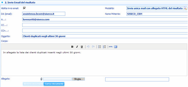 Selezionando “Abilita invio email” ed indicando un indirizzo, al termine dell’esecuzione del comando verrà spedita una e-mail in formato HTML col risultato del comando.