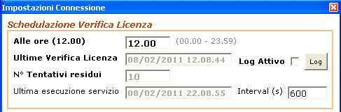 La periodicità è modificabile nelle “Opzioni del License Manager”, nel campo “Interval (s)”, il cui default è 600 secondi. Pertanto se si desidera eseguire un Job con una frequenza superiore ad una volta ogni 10 minuti (es. ogni 5 minuti) occorre ridurre il tempo di “Interval (s)” nelle “Opzioni del License Manager”, affinché quest’ultimo sia inferiore (es. 100 secondi).