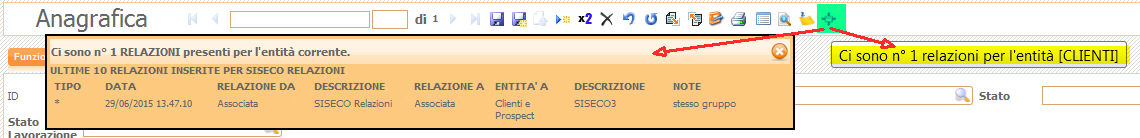 Posizionandoci su questa icona, se vi sono già delle relazioni questo viene evidenziato nel tooltip (nel messaggino riquadrato che compare passando sopra col mouse sull'icona).