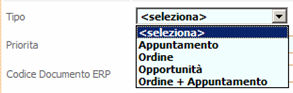 Ad esempio, in una opportunità vedrò solo le tipologie corrispondenti, ovvero quelle che si possono usare per le "opportunità", mentre negli ordini vedrò solo quelle relative agli ordini.