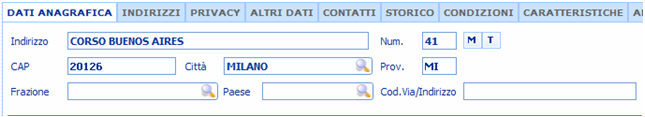 tipo LIKE% (non preciso) ovvero verranno cercati in anagrafica gli indirizzi che assomigliano alla parola specificata nella riga (Es. scrivendo VIA VERDI il programma cercherà i Clienti il cui indirizzo sia la parola VERDI o che contenga la parola VERDI, tipo VIA VERDIANA)