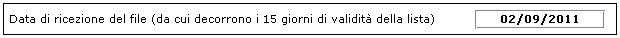 Il primo passaggio è quello di indicare la data di ricezione del file, es.: