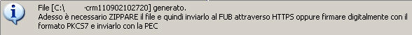 Una volta generato, il file va ZIPPATO ed inviato al FUB con le modalità previste (via sito autorizzato oppure via posta certificata).