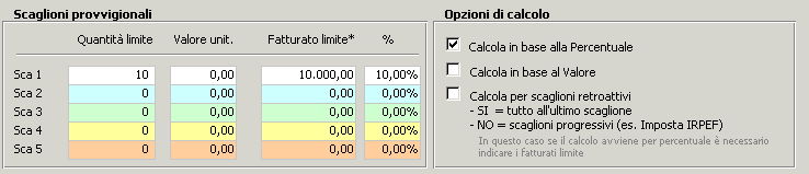 il metodo di calcolo (percentuale o valore) da utilizzare (vedere prossimi paragrafi)