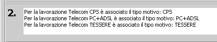 Premendo il tasto con la scritta in verde “Come specificare i tipi motivi”, compare un messaggio che spiega come sia possibile associare i tipi motivi indicati nelle motivazioni con le lavorazioni attualmente attive di Telecom (specificato anche nei prossimi paragrafi).